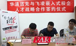 签约仪式上,华清“星创客”精英班经理秦老师与飞凌嵌入式产品研发部杨经理分别致辞。双方分别介绍了各自的单位情况,探讨了很多技术和用人问题,很是投机。
